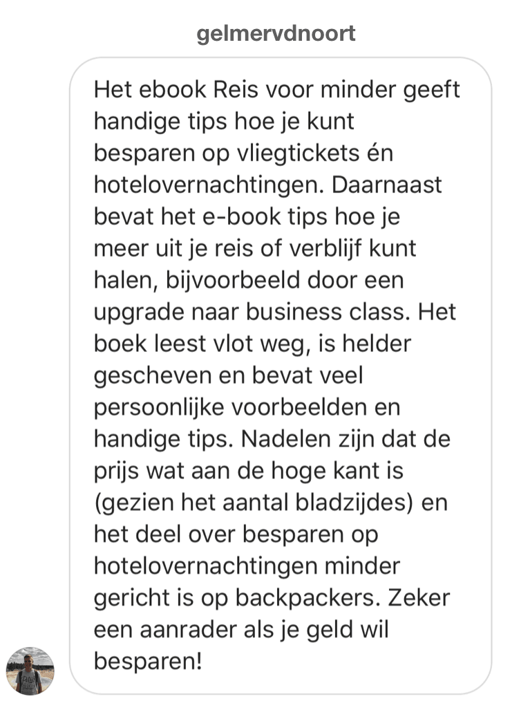 Ten slotte is het uitgeven van een papieren boek erg duur. We zouden de prijs dan flink moeten verhogen om er überhaupt iets aan over te houden. Nu levert het ons wel wat op, zodat we mooie praktische reisverhalen kunnen blijven maken.