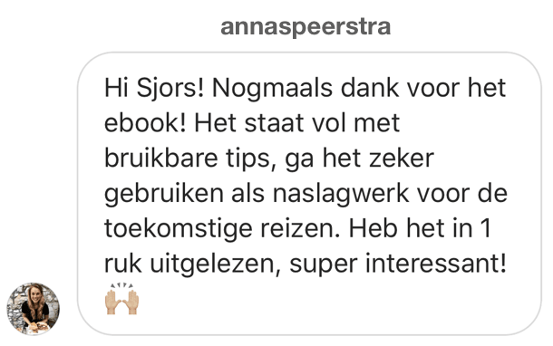 We willen je in elk geval bedanken voor je tijd en wensen je nog heel veel mooie reizen toe!